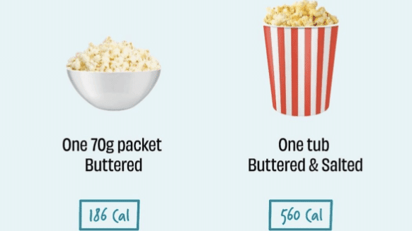 But have you ever seen anyone serve you just as much as you need? No. there will be this small (yet big), big, and large size when you go to the movie theatres. And that’s the trickery of serving sizes dictated by food marketers.
