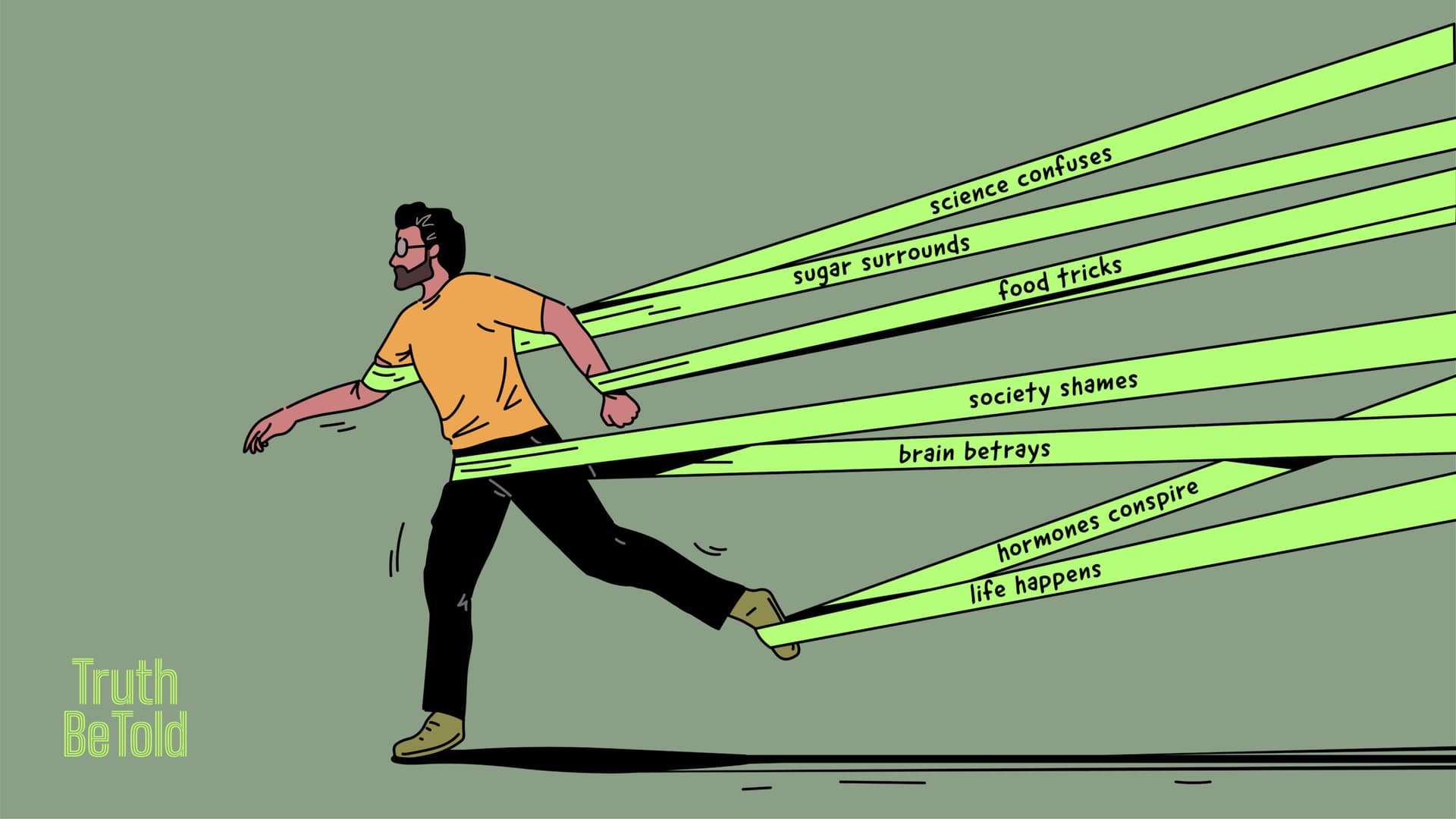 Long-term weight loss is a complex systemic problem. It’s like a wrestling battle where the rules are rigged to make you lose. You are thrown in the ring against multiple opponents: our biology, psychology, and society are together fighting against you. The body is playing for the opposite team — a grand conspiracy.